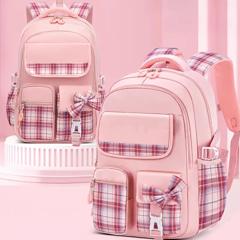 š 3. Pink Plaid Backpack with Bow ā $9.98